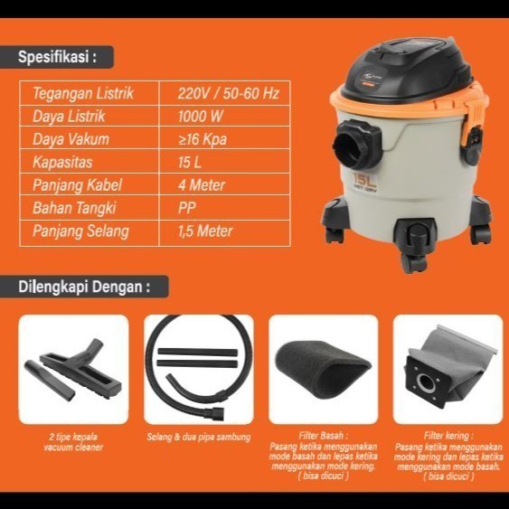 RYU MESIN VACUM RCV15L CLEANER SEDOT BASAH KERING VACUUM CLEANER PEMBERSIH DEBU AIR
