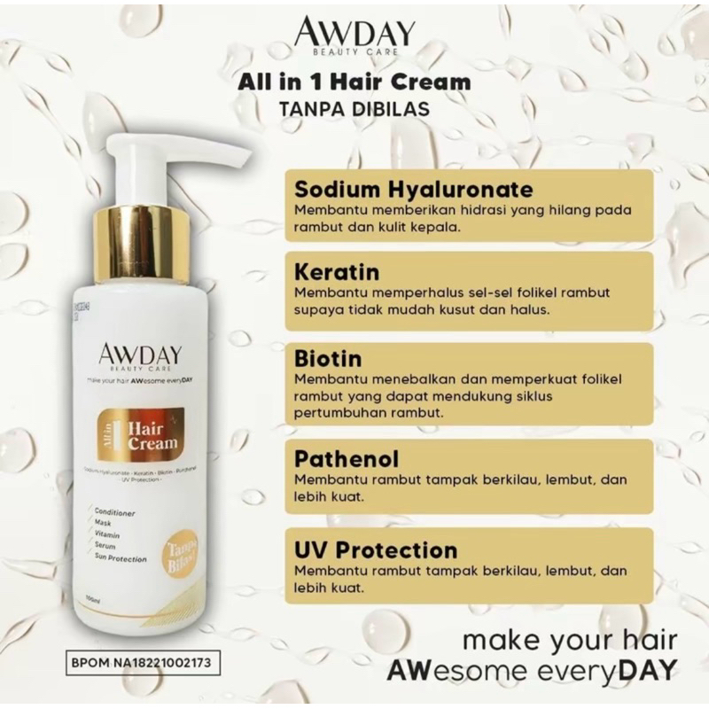 CONDITIONER / HAIRCREAM AWDAY ALL IN ONE TANPA BILAS Shampoo Haircare