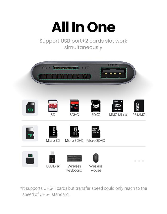 CARD READER 3IN1 UGREEN USB TYPE C KE USB A 20 SD TF CARD 80798 15307 4IN1