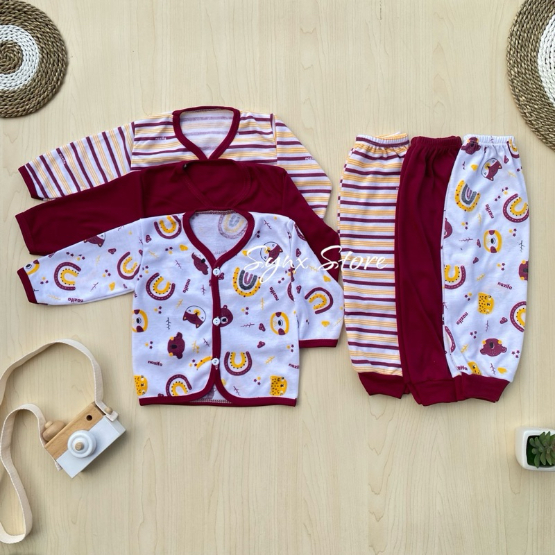 3 Set / 6 Pcs Baju Celana Tangan Panjang Untuk Bayi Newborn 0-3 Bulan Terbaru Murah