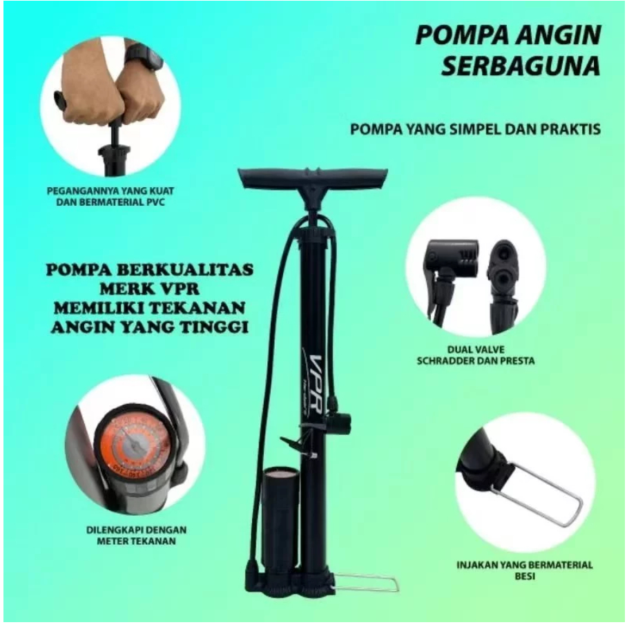VPR Pompa Angin Ban Sepeda Dan Motor Kompa Sepeda Meter Tekanan Manual Dual Pentil Alloy
