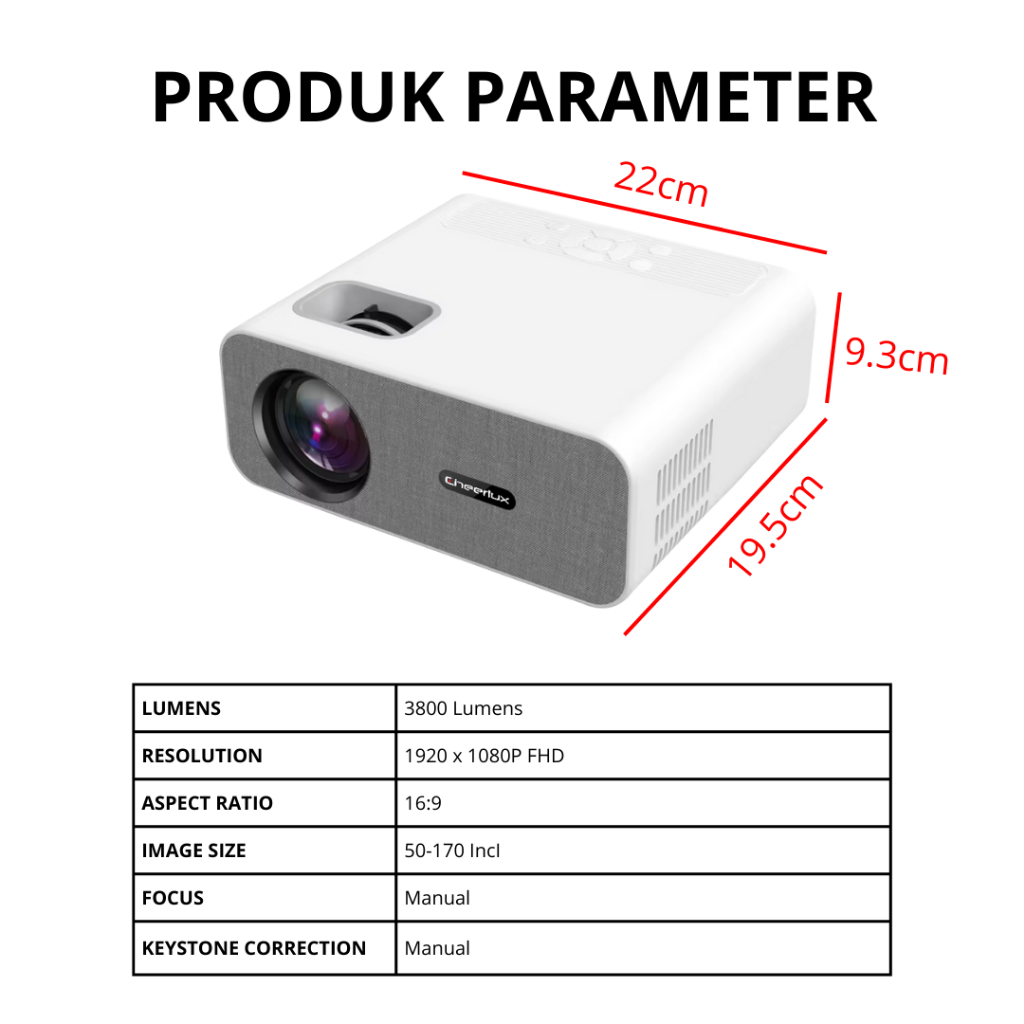 PROYEKTOR CHEERLUX | PROJECTOR C12 WIFI 3800 LUMENS BLUETOOTH SCREEN MIRRORING KE HP SUPPORT 1080P