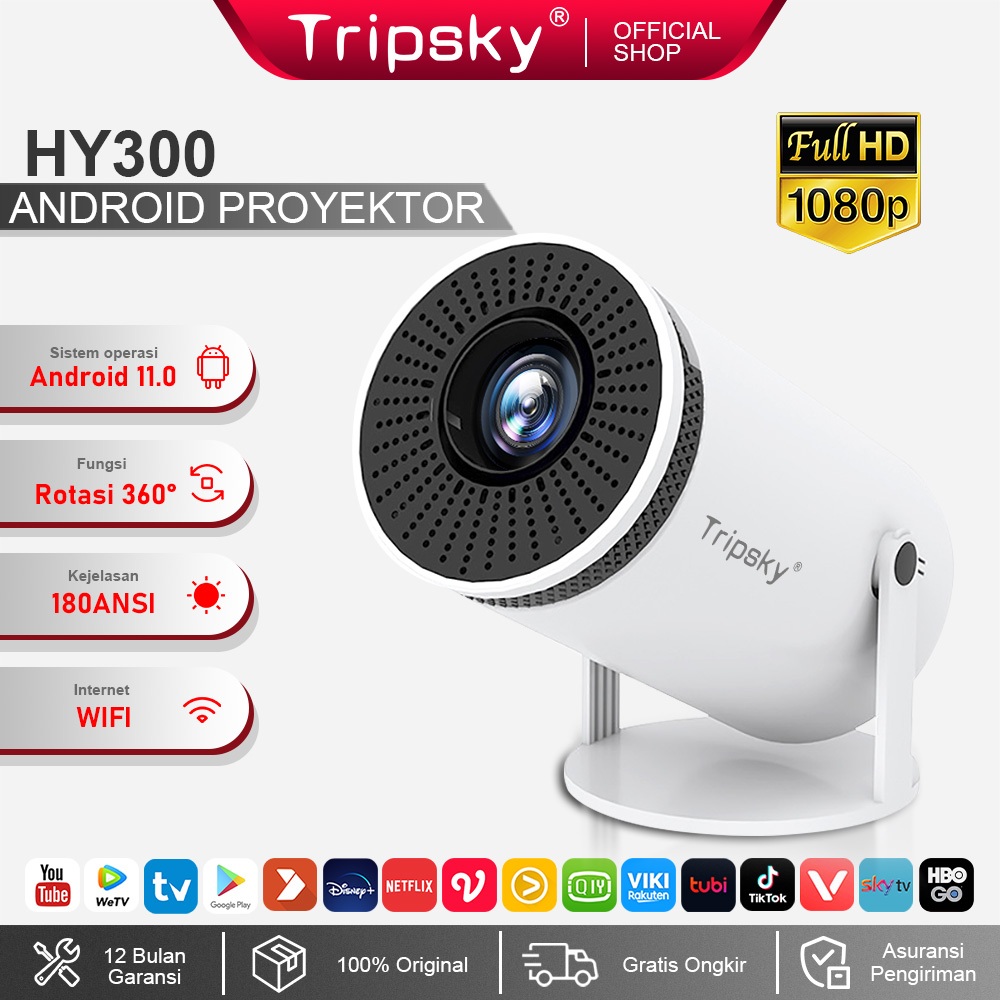 TRIPSKY PROYEKTOR HY300 SMART PROJECTOR ANDROID 11.0 OS 1080P 5000 LUMENS BLUETOOTH HD PROYEKTOR
