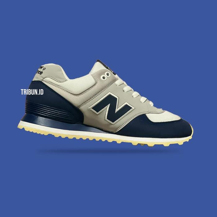 [Star][BISA READY] Sepatu Kasual Pria NB Bahan Suede Made In U.S.A Casual - Putih abu navy, 38