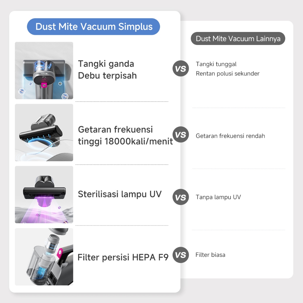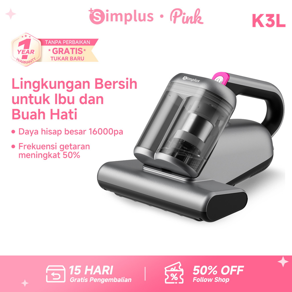 SIMPLUS PINK DUST MITE VACUUM CLEANER DESAIN TANGKI GANDA STERILISASI LAMPU UV 16000PA FILTER HEPA