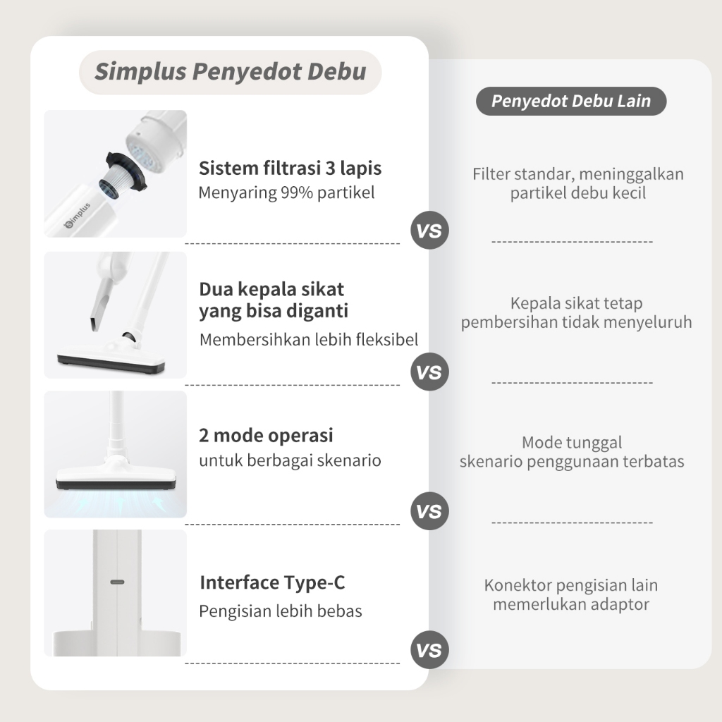 SIMPLUS VACUUM CLEANER CORDLESS 8000PA PENYEDOT DEBU TANPA KABELDENGAN 3 LAPISAN FILTRASI EFISIEN