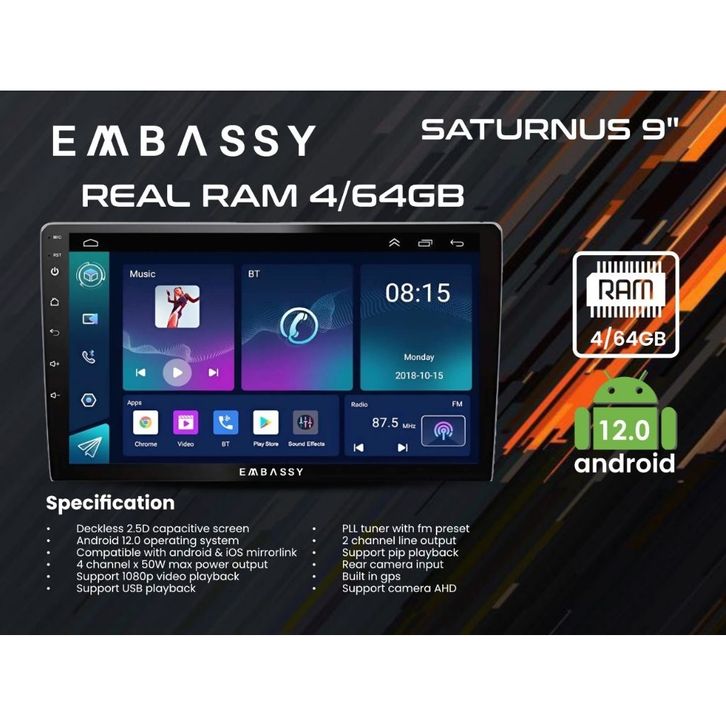 Head Unit Android Embassy 9" Taurus 4/64GB Apple CarPlay NFC Do2