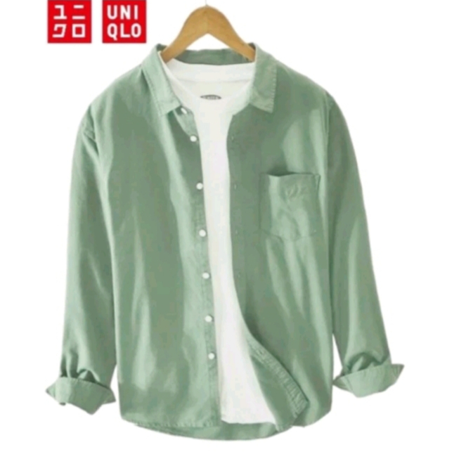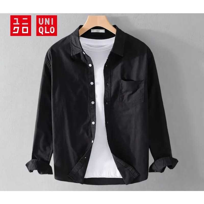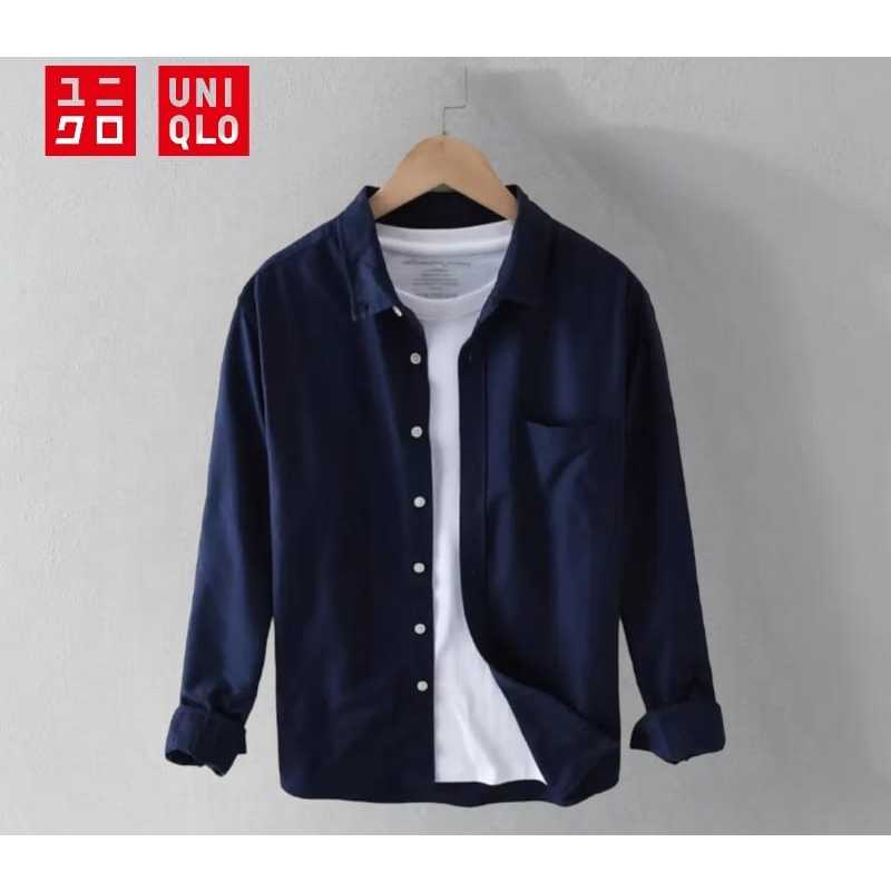 uniqlo kemeja putih pria kemeja lengan panjang pria atasan pria dewasa kemeja casual pria