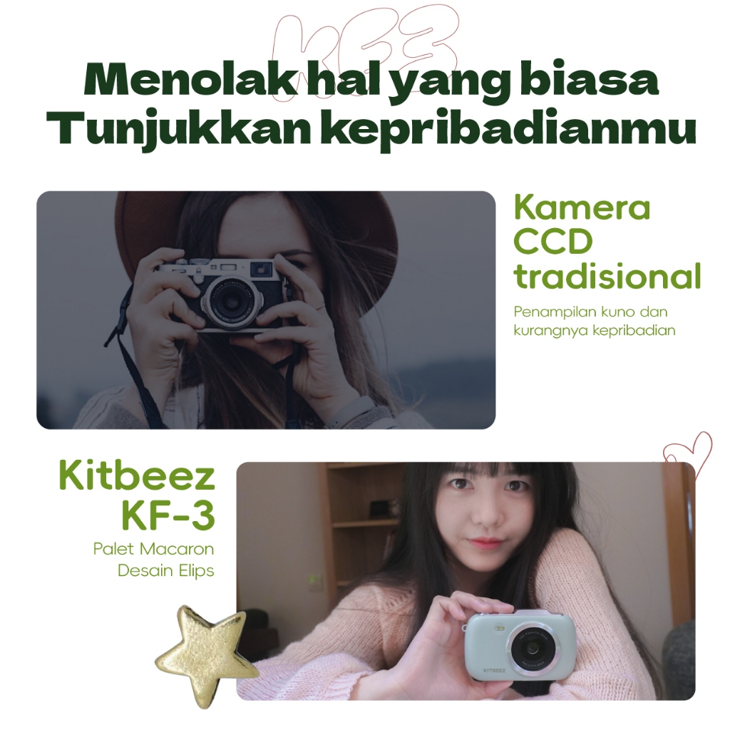 [Mall] Kamera Digital KiTBEEZ KF-3 64MP 18X 4K HD Vedio Macaron Kamera Lucu Kamera Murah Dengan filter dan flash Kotak