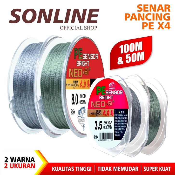 Senar Pancing Sensor Bright NEO+si2 Warna Abu-abu & Hijau Bahan PE 50M & 100M SONLINE