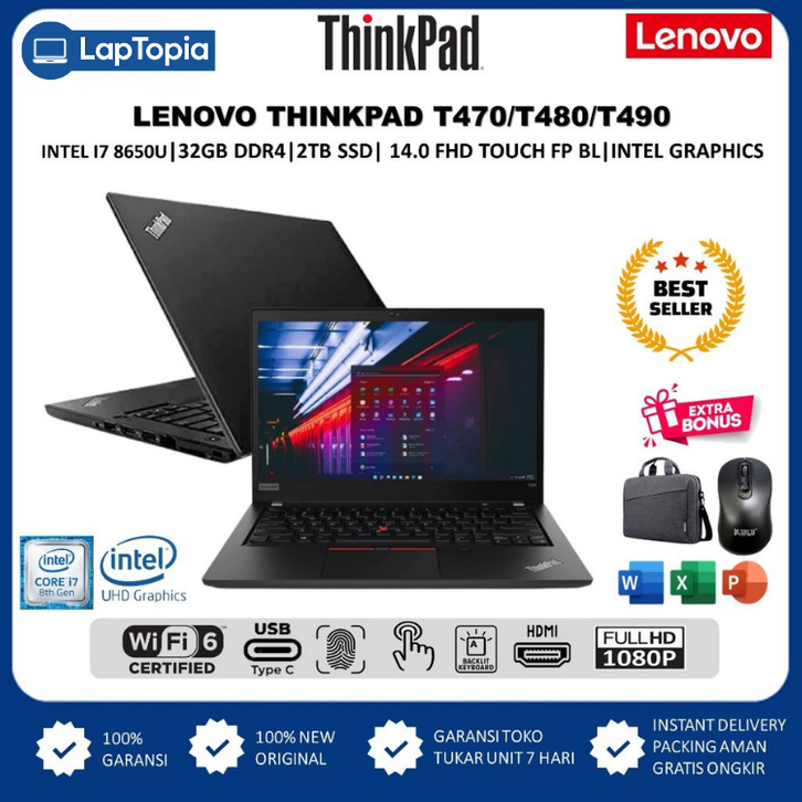 Laptop Lenovo Thinkpad Intel Core i5 Gen8 16GB 512GB SSD 14 Inch FHD IPS Win 10 Pro Original | Laptop Kerja & Kuliah