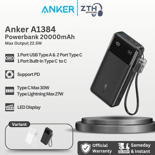 Anker Powerbank 20000mAh LED Display 30W PD 3 Port USB Type A/C A1384