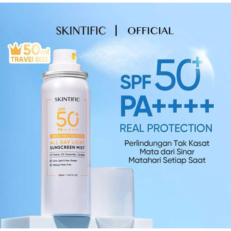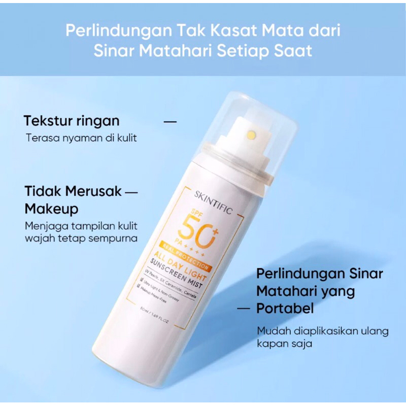 SKINTIFIC All Day Light Sunscreen Mist SPF50 PA++++ Sunscreen Spray Anti UV Wajah/Body Spray