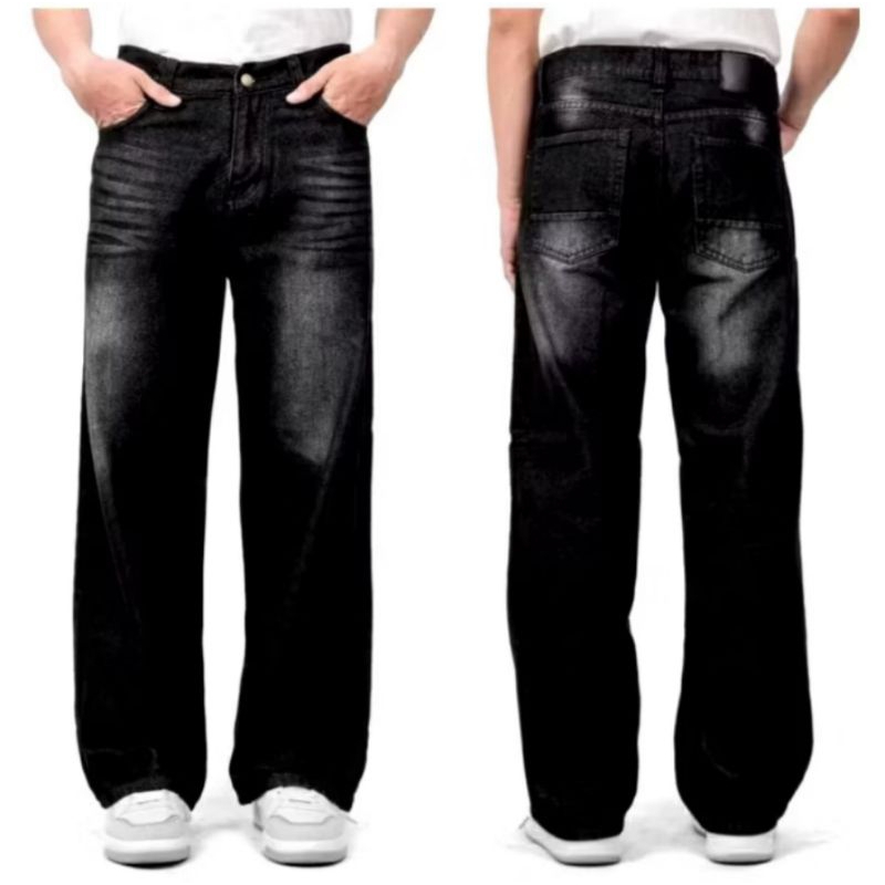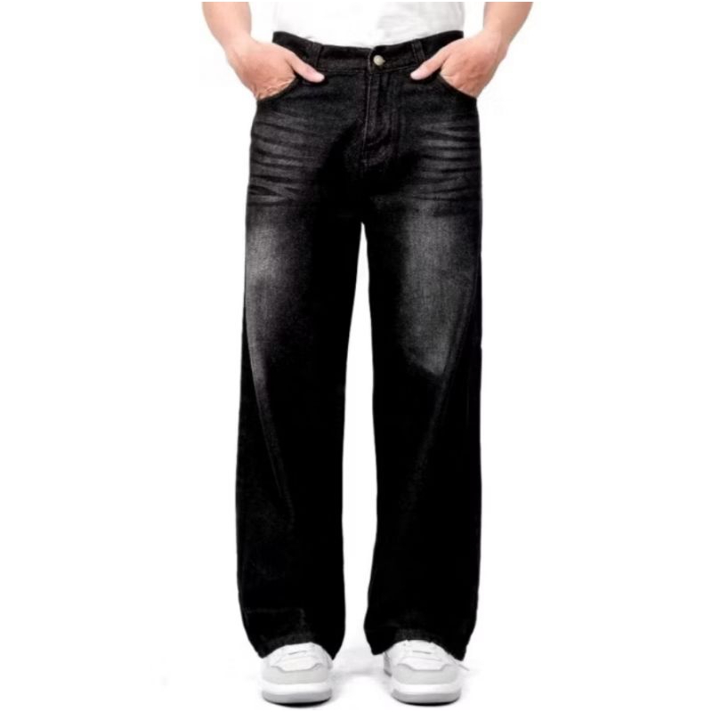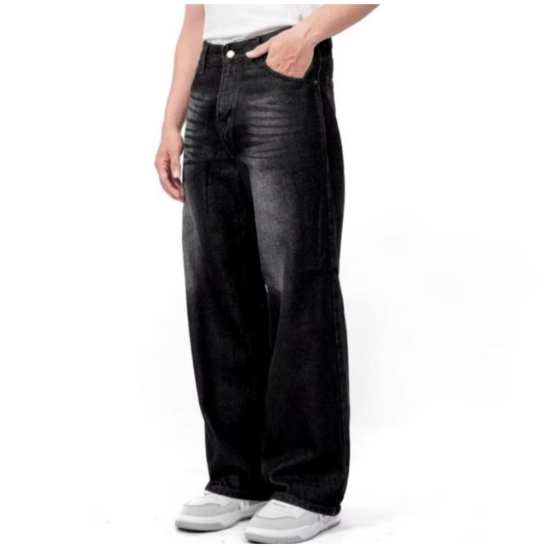 Celana Jeans Pria Wisker Gombrong Wide Leg Lebar Skena Black Wisker