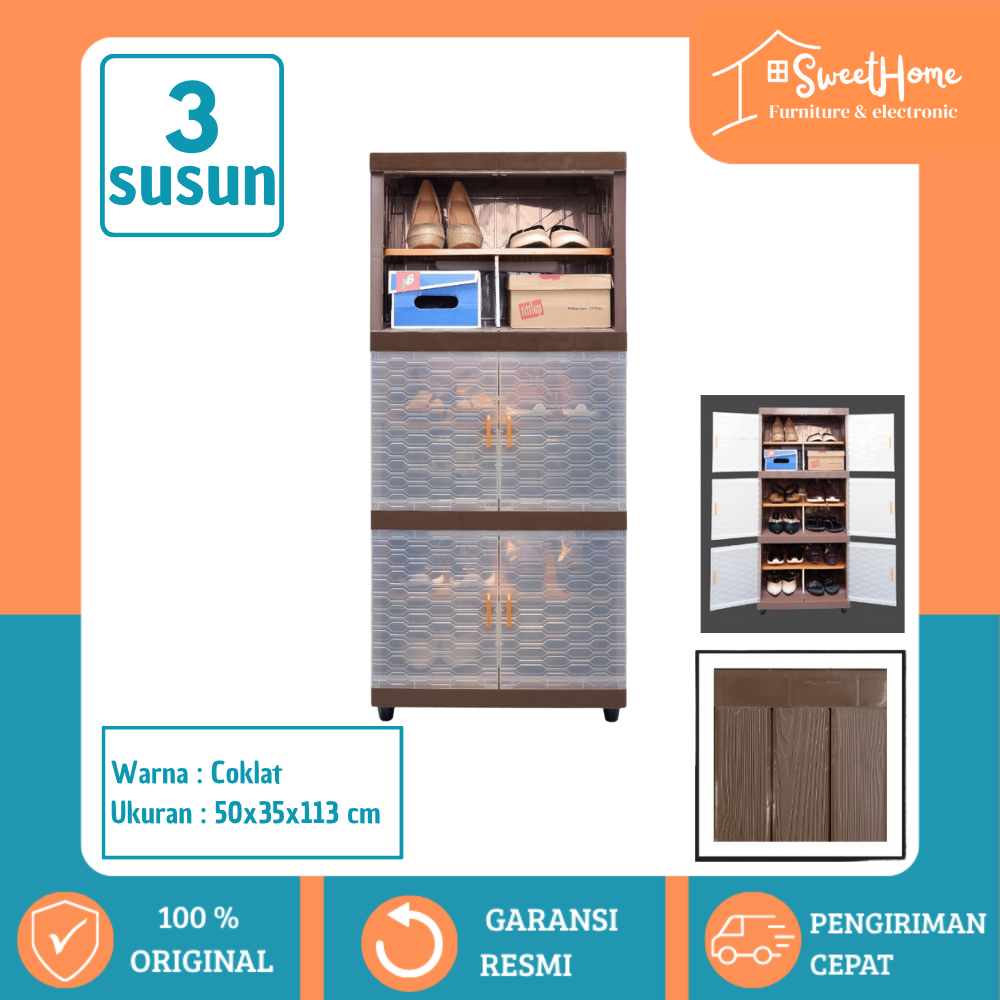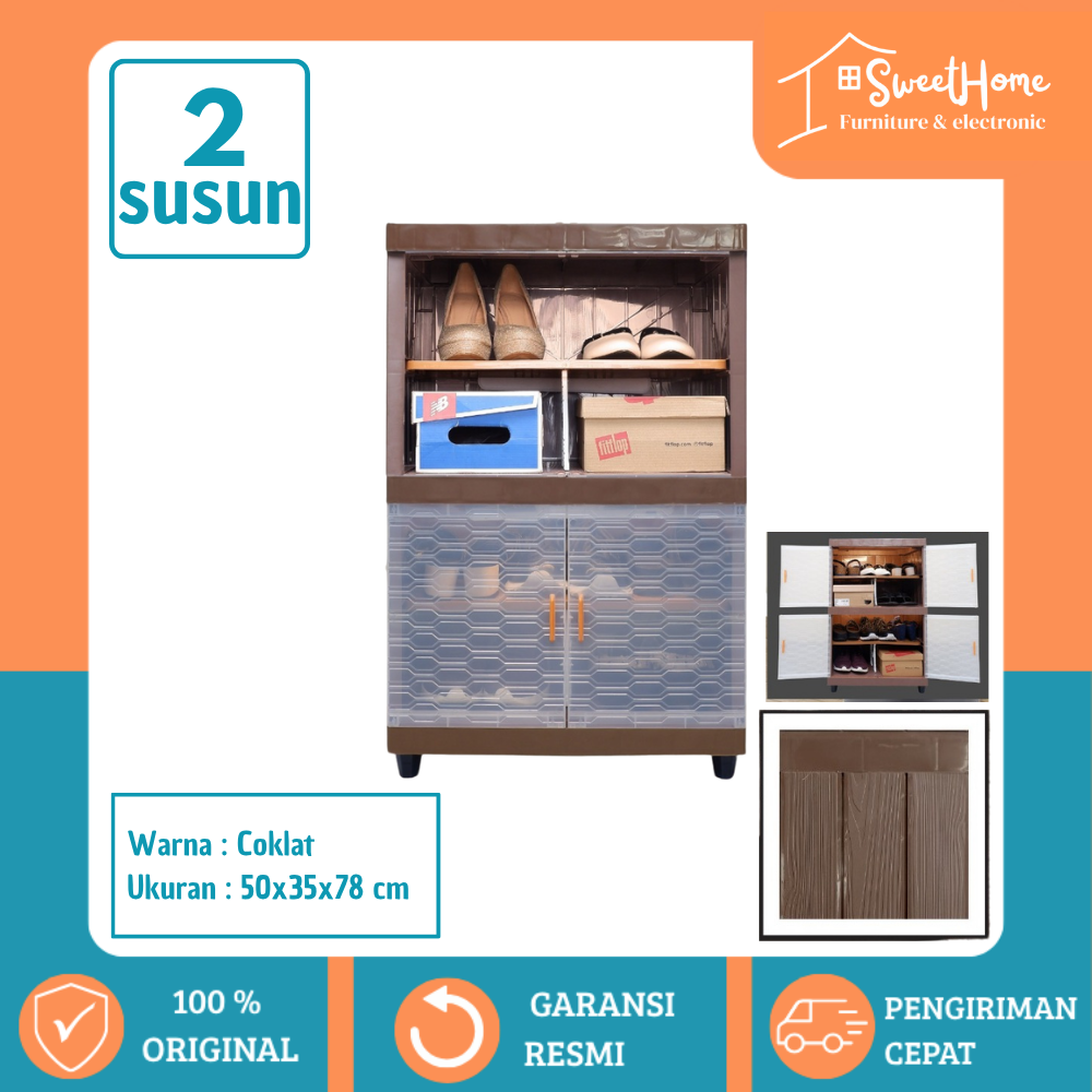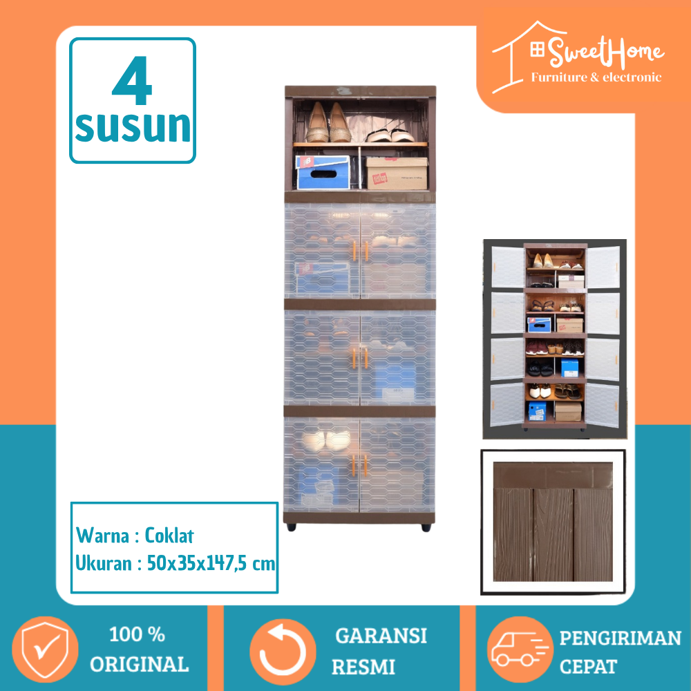 Lemari Plastik 4 Susun Pintu jumbo Club Murah Berkualitas Rak Sepatu Plastik Susun Tertutup Anti Debu Official Store