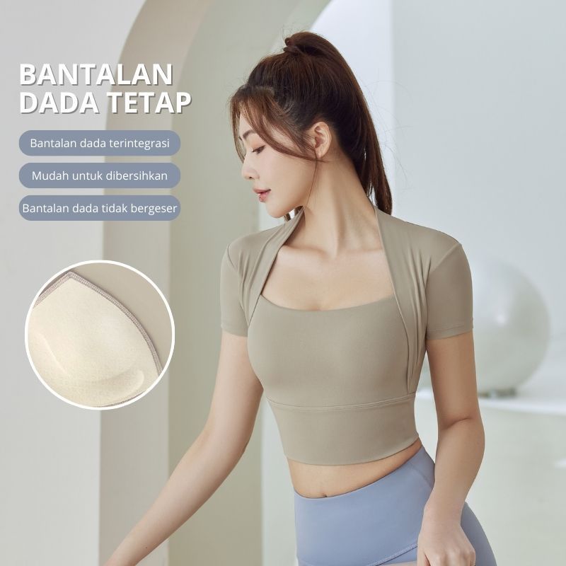 [Mall] ATASAN OLAHRAGA WANITA BAJU YOGA KAOS SENAM KAOS OLAHRAGA WANITA ATASAN BANTALAN DADA BAWAAN YF086