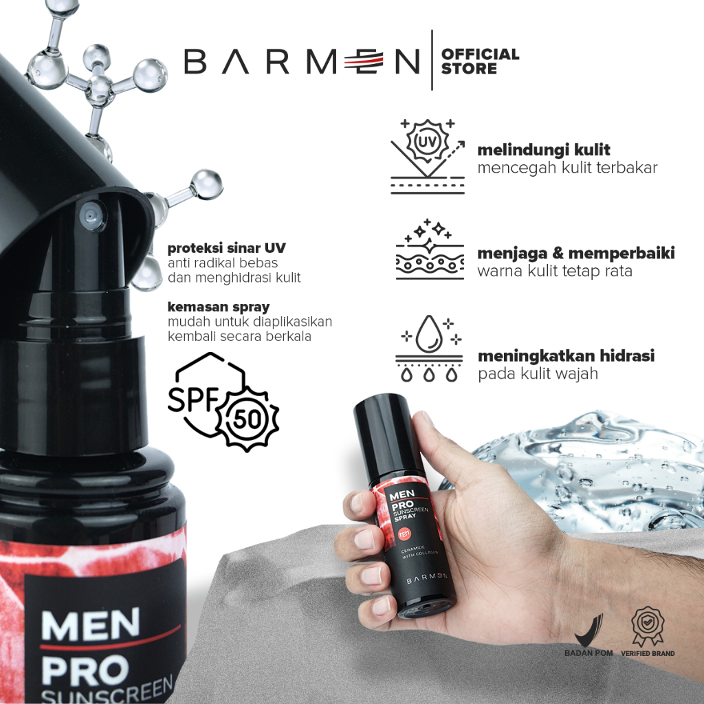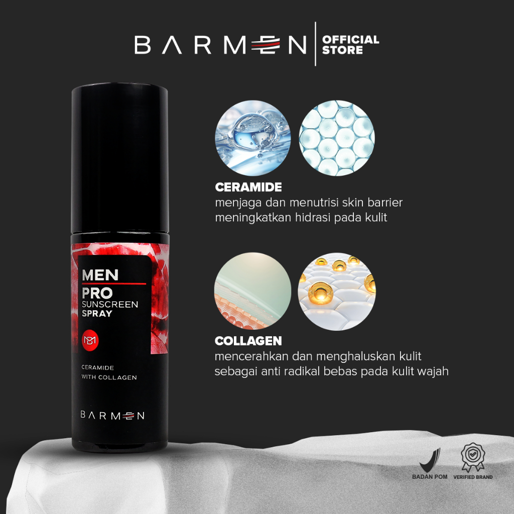 BARMEN PRO Sunscreen Spray Ceramide With Collagen 50 ml 2 Pcs - SPF 50 / Anti UV untuk Wajah Pria