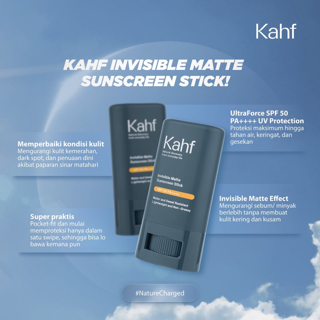 Kahf Invisible Matte Sunscreen Stick SPF 50 PA+++ Skincare Pria BPOM