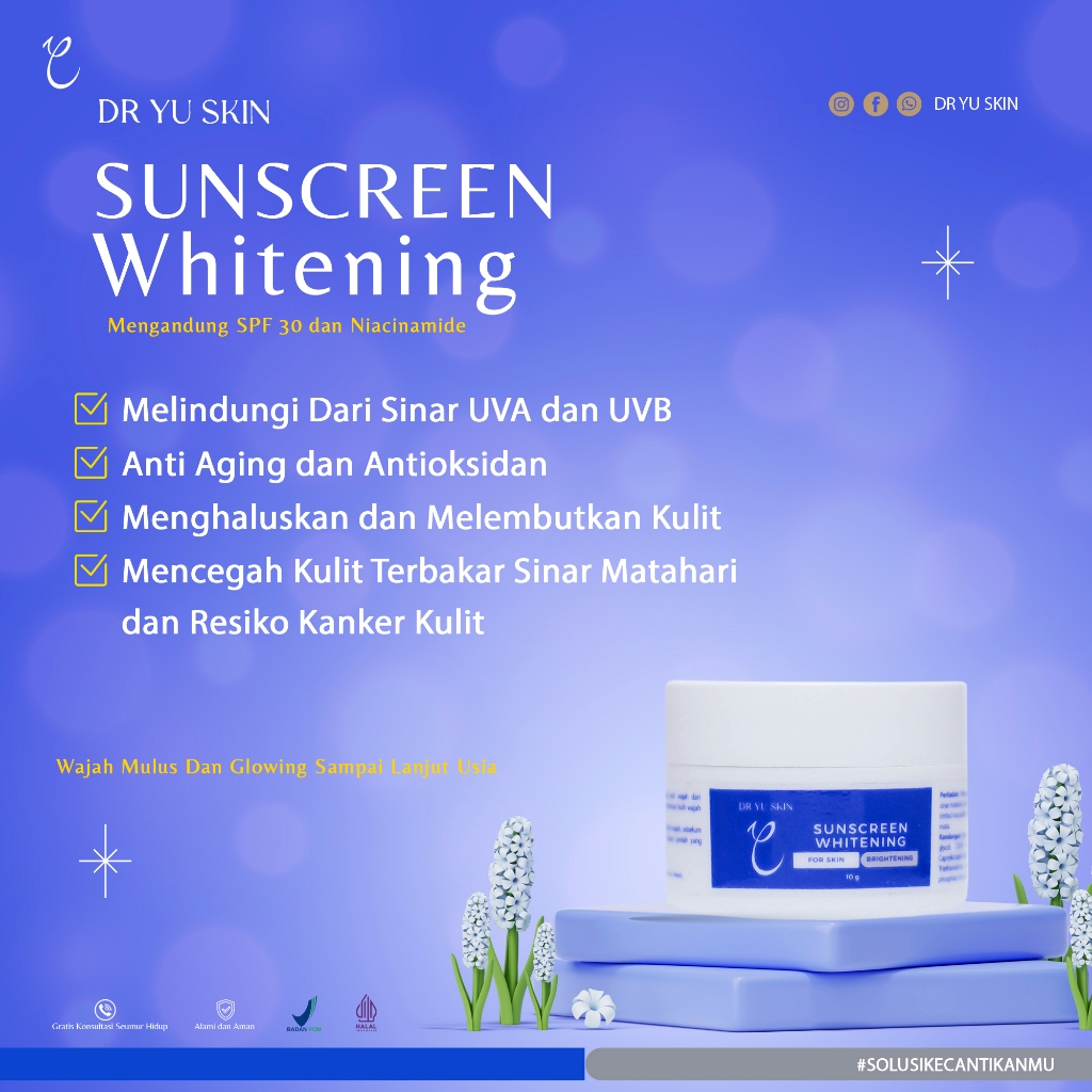 DR YU SKIN - Sunscreen Whitening & Sunscreen Oily SPF 30 & 15 10gr | Melindungi Kulit Wajah Dari Sinar UV | Anti Aging d