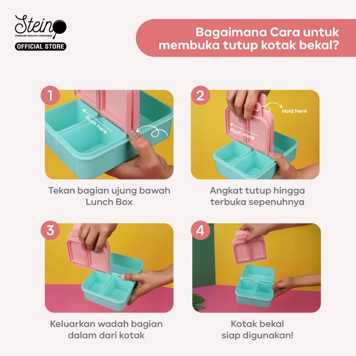 STEIN Lunch Box - Snack Box Mini/Small - Kotak Makan/Kotak Cemilan 3 Sekat 900ml