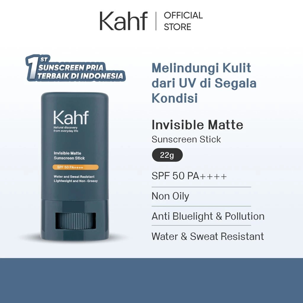 Kahf Sunscreen Stick Invisible Matte SPF 50 PA++++ 22g - Sunscreen Perawatan Wajah Pria