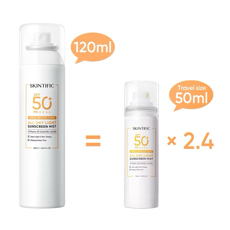 SKINTIFIC - All Day Light Sunscreen Mist SPF 50 PA++++ 50ml / 120ml | Sunscreen Spray UV Mist Tone Up Sun Shield Sunscre