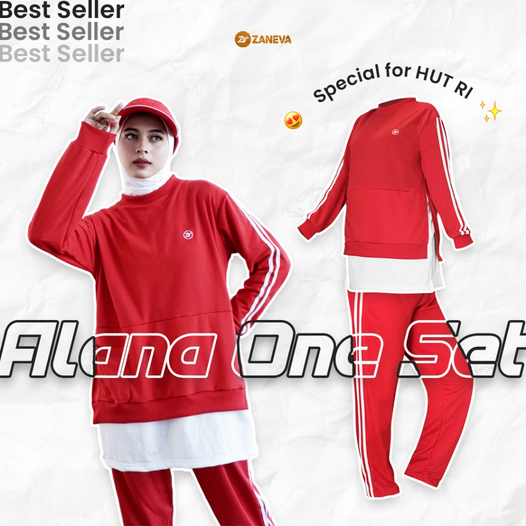 [Mall] ZANEVA SPORTWEAR ORI – ONE SET ALANA SPORTY L SETELAN OLAHRAGA MUSLIMAH SPECIAL KEMERDEKAAN