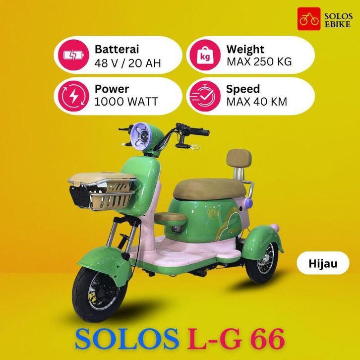 SEPEDA LISTRIK SOLOS RODA TIGA LG66 / LM60 / LX33 / GARANSI RESMI TERBARU (BONUS POMPA)