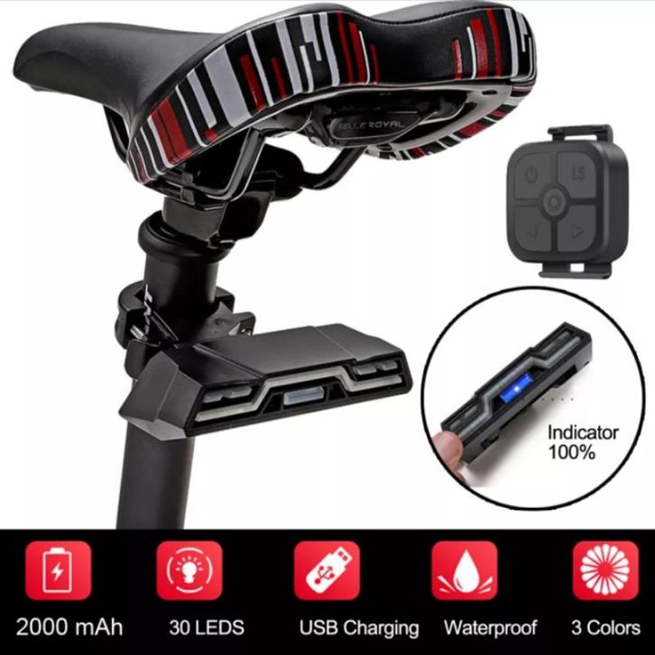 Lampu Belakang Sepeda Smart Light Wireless Remote Control USB Rechargeable Bicycle Tail Light Lampu Sen Sepeda Lipat MT