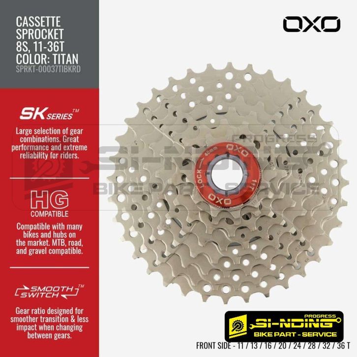 Gear Belakang Sepeda MTB Sprocket OXO 8 Speed 11 - 36T Silver Slup Cassete