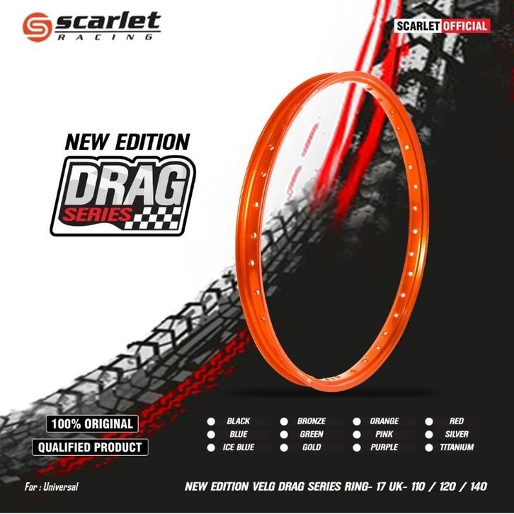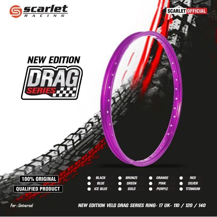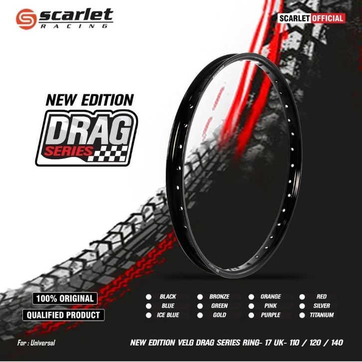 Velg Almu Scarlet Drag series ring 17 lebar ukuran 110 120 140 160 new edition Drag 12 warna setiap pembelian 1 set / 2