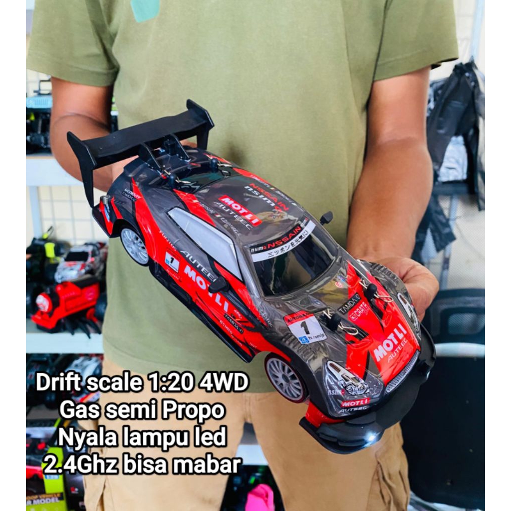 Free Batre Roda Serep Mobil RC Propo Nissan GTR Drift 4WD Batre Cash Nyala Lampu LED/ Mainan Mobil Remot Control Sport C
