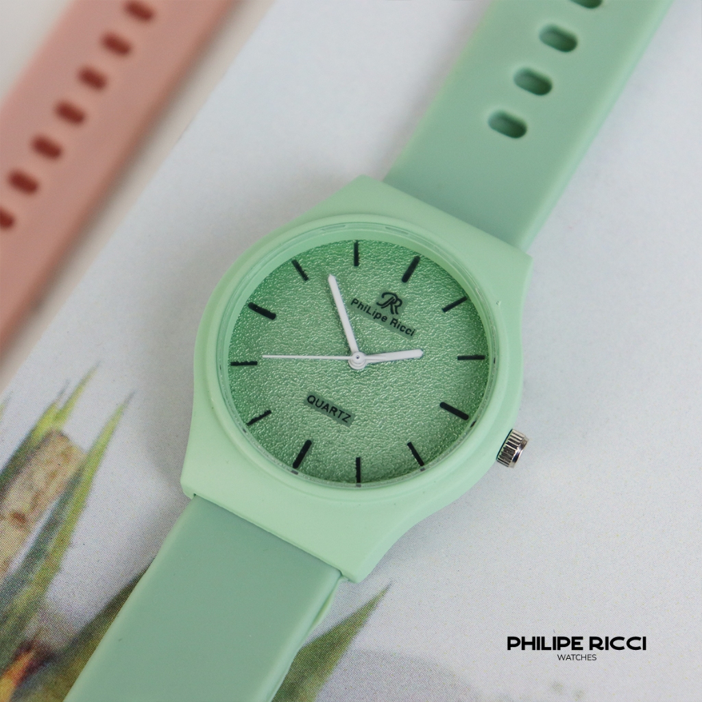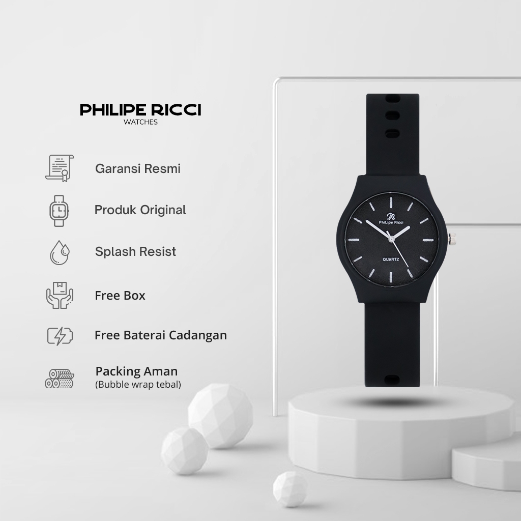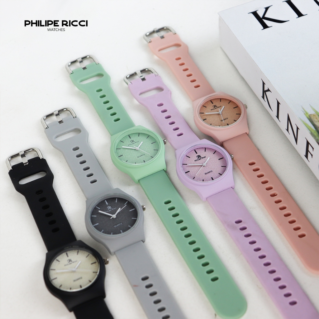 PhiLipe Ricci Jam Tangan Wanita Analog Diameter Bulat Model Simpel Terbaru Strap Tali Karet Gaya Korea 6232G Woman Watches Free Box Dan Baterai