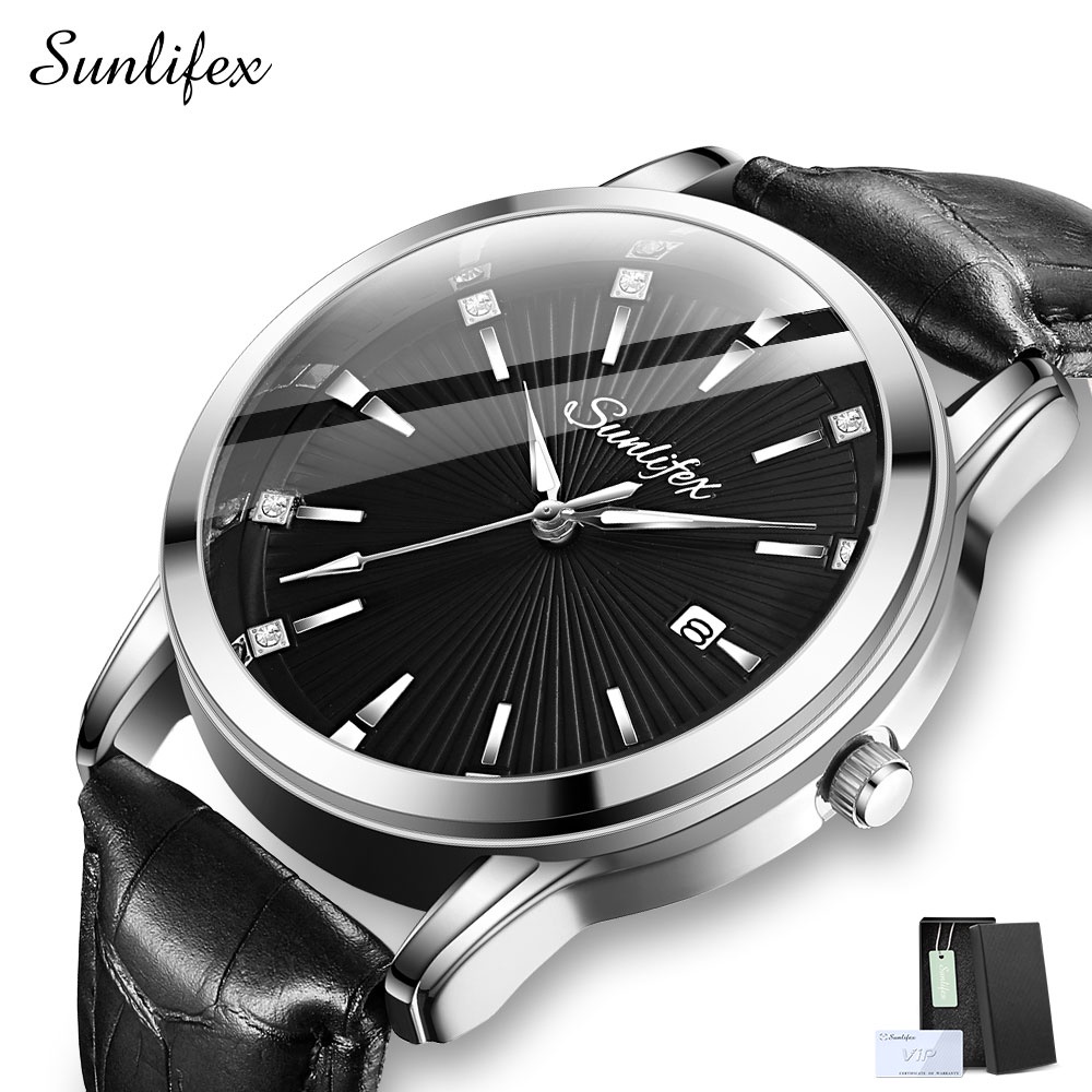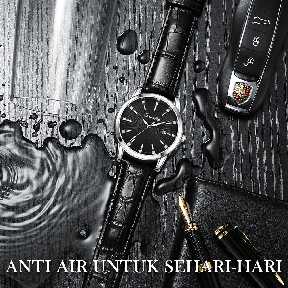 Sunlifex Jam Tangan Pria Kuarsa Anti Air Pria Tali Kulit Bisnis Mode Kalender Jam Tangan Cowok
