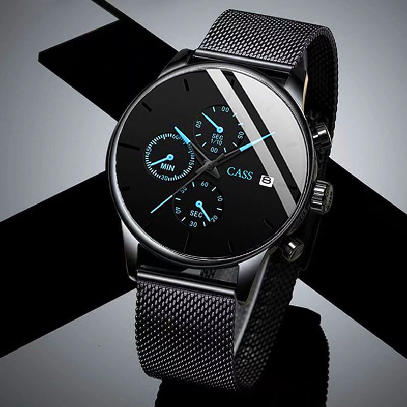 Jam Tangan Pria Anti Air Cass High-end Men's Stainless Steel Mesh Belt Watch Men's British Style Business Calendar Table Male Student Sports And Leisure Watch