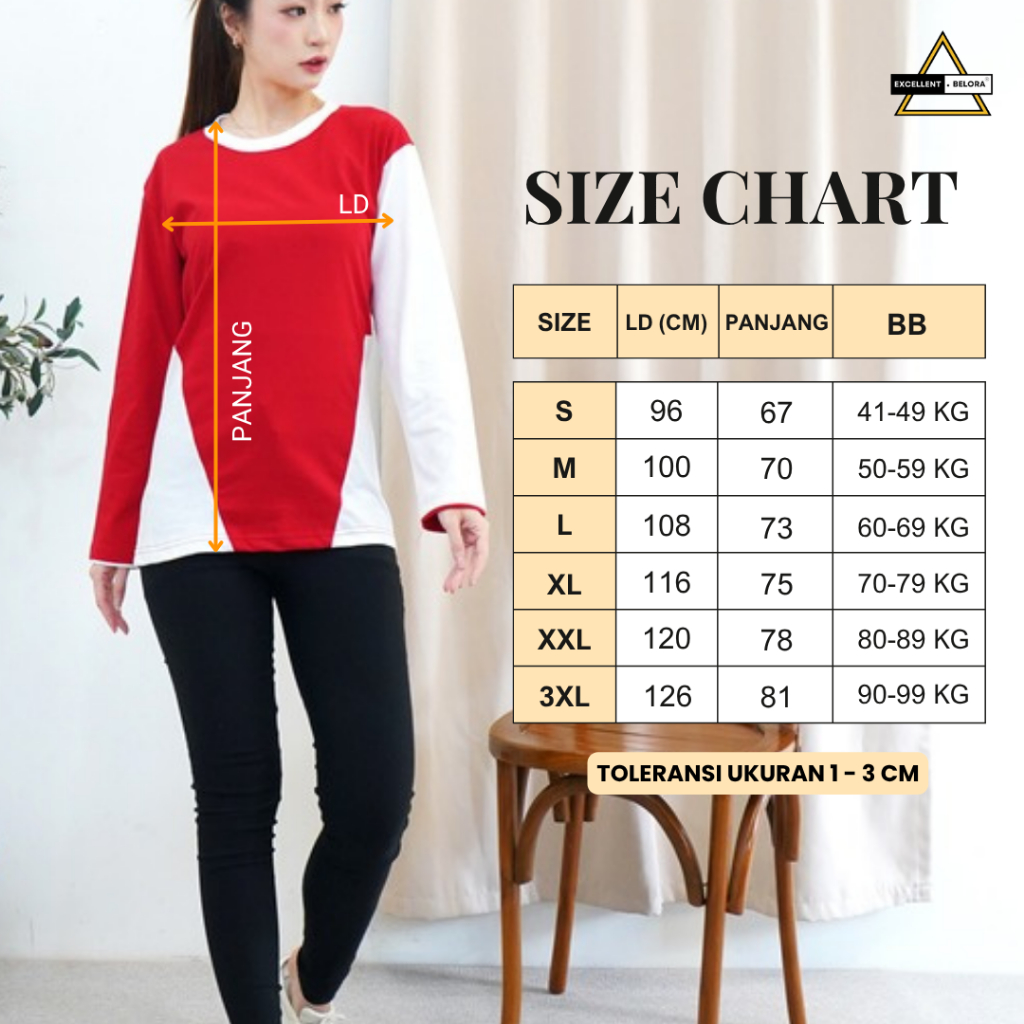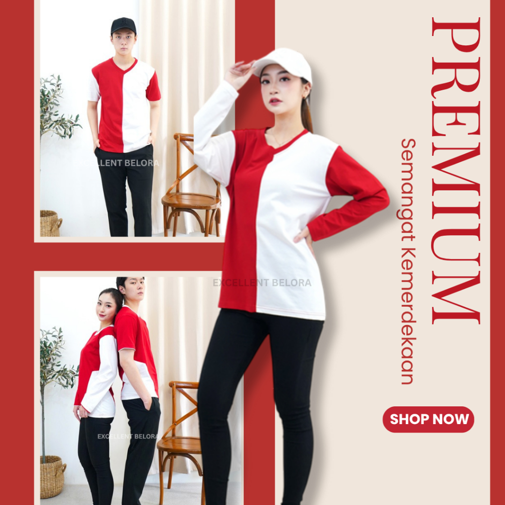 Excellent Belora Kaos Merah Putih Pria Wanita Premium Cotton Combed 24s S M L XL XXL 3XL Atasan Oblong Seragam Indonesia
