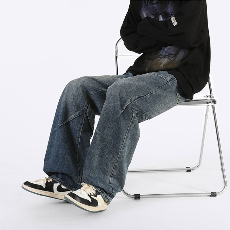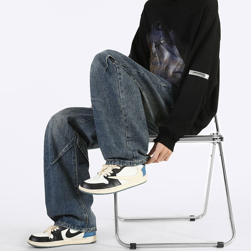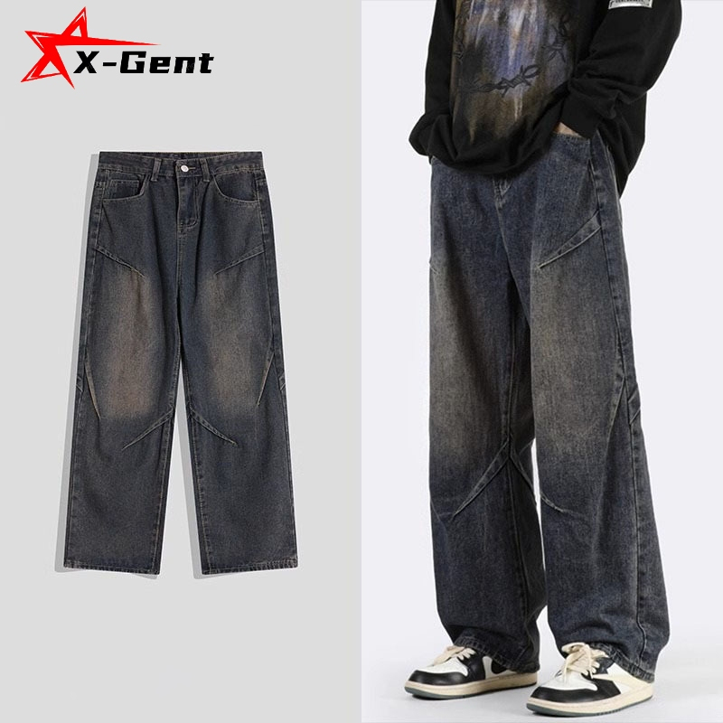 X-gent celana gombrong jeans pria biru retro korean style baggy kulot jumbo denim pants cowok