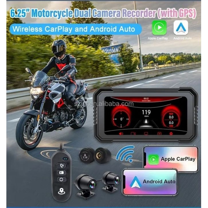 Gps Dashcam recorder motor navigasi Maps android auto & Iphone Carplay, TPMS kamera HD1080P 6.25inc MT6025G