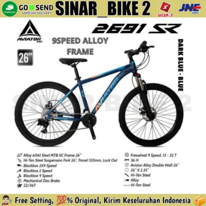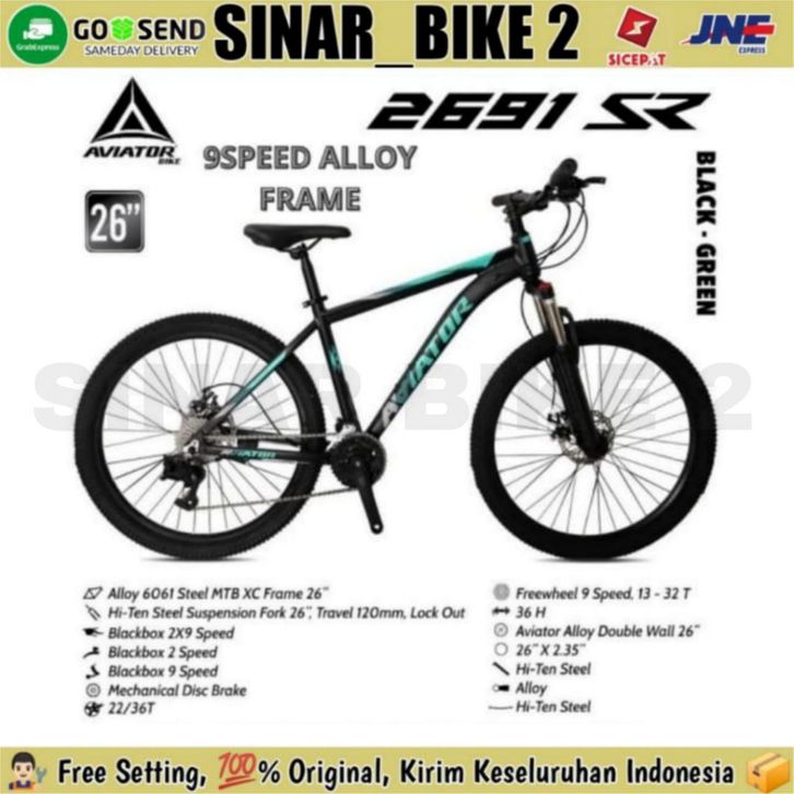 Sepeda Gunung MTB AVIATOR 2691 SR 26 Inch 27 Speed Rem Cakram Alloy