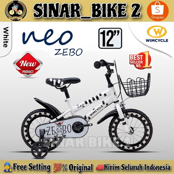 Sepeda Anak WIMCYCLE NEO RANY Rabbit & NEO ZEBO Zebra Keranjang Ukuran 12 Inch Perempuan & Laki