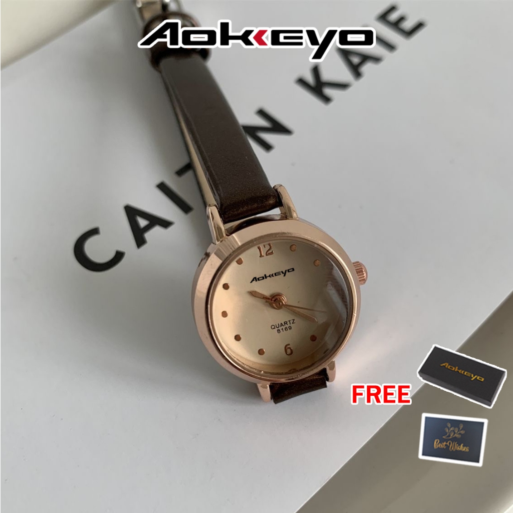 AOKEYO W230 Jam Tangan Wanita Baru Original Korea Design Kecil Wanita Jam Tangan Wanita Kulit (Kotak + Kirim Kartu)