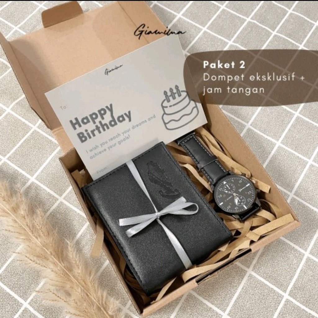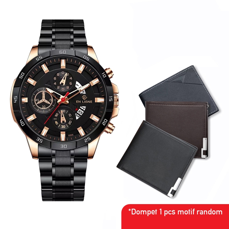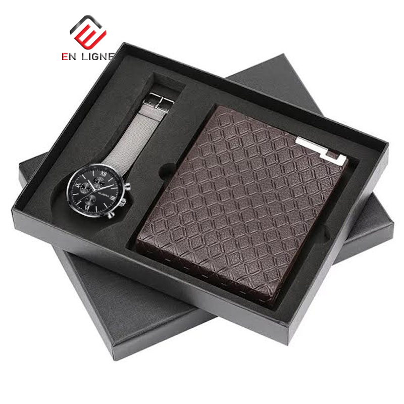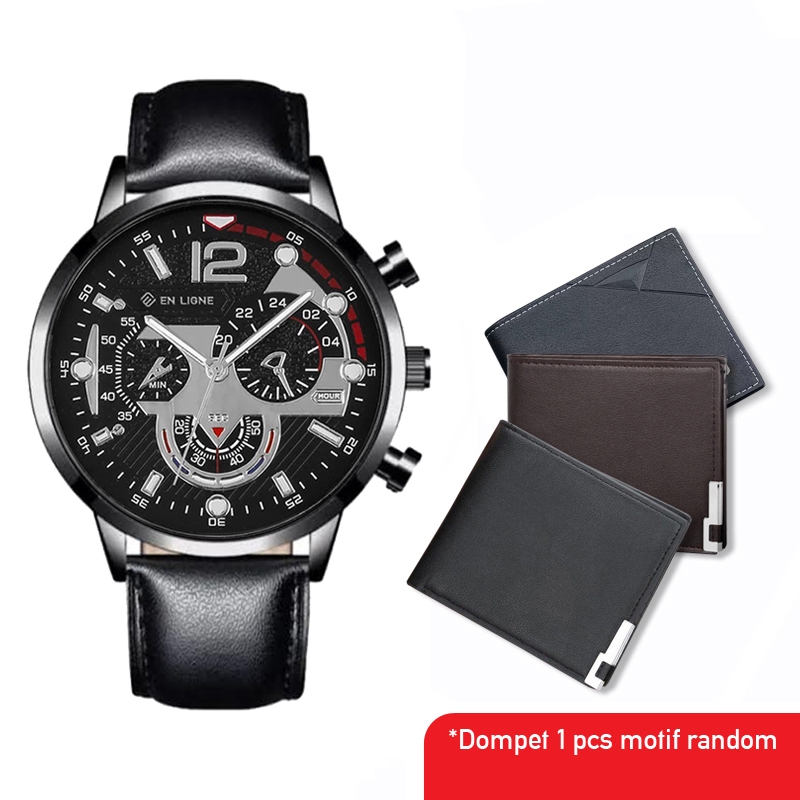 EN LIGNE - Jam Tangan Pria Set - Jam Tangan Gift - Jam Tangan Kado - Jam Tangan Dompet Set - Kado Ultah - Hampers