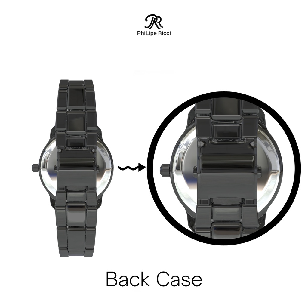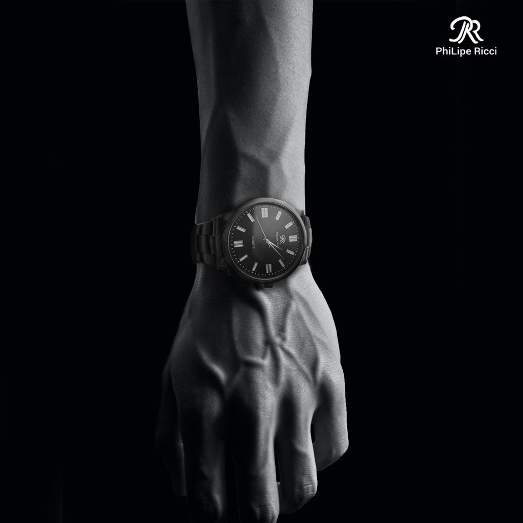 PhiLipe Ricci Jam Tangan Pria Rantai Besi Analog Black Series BLCK21 Exclusive Launch