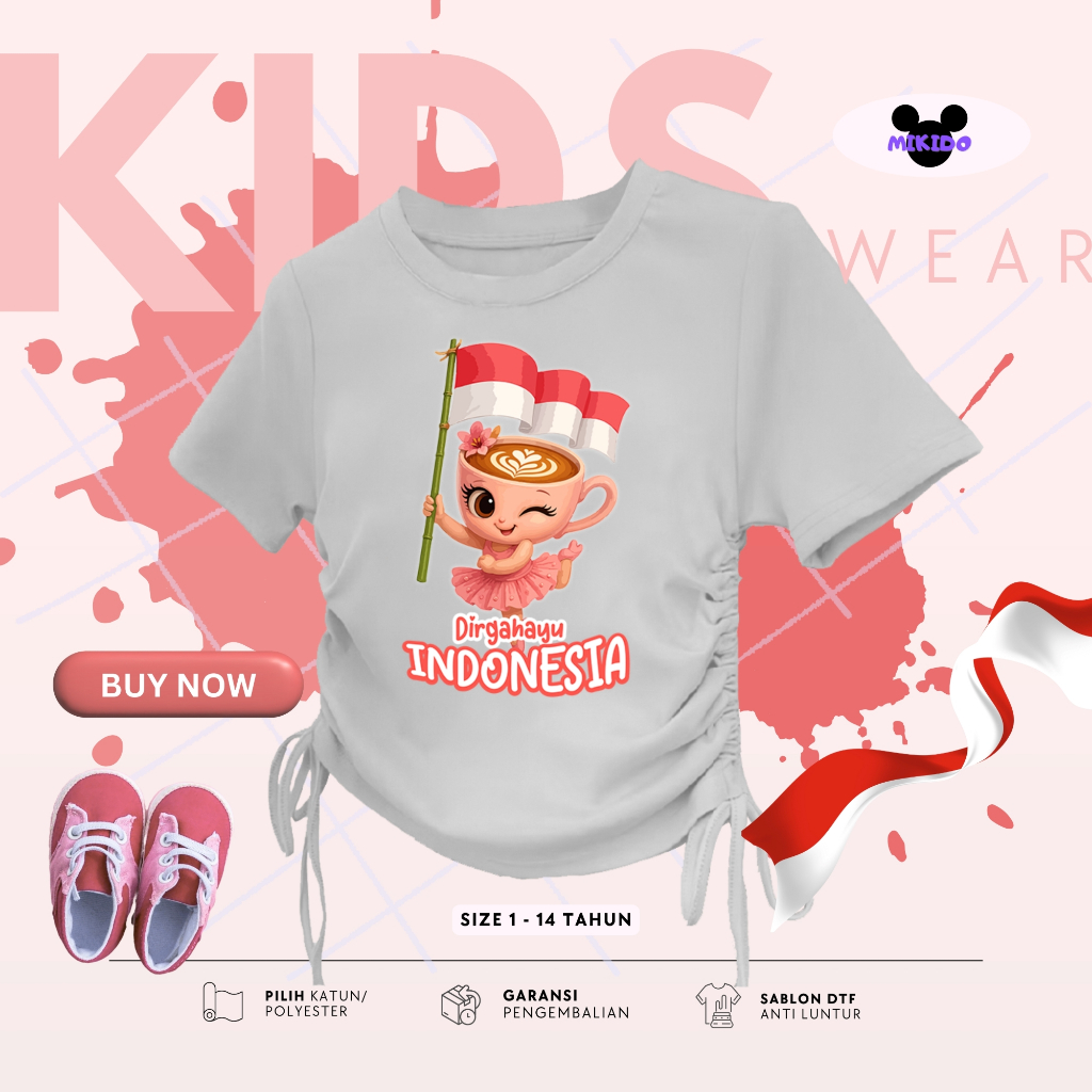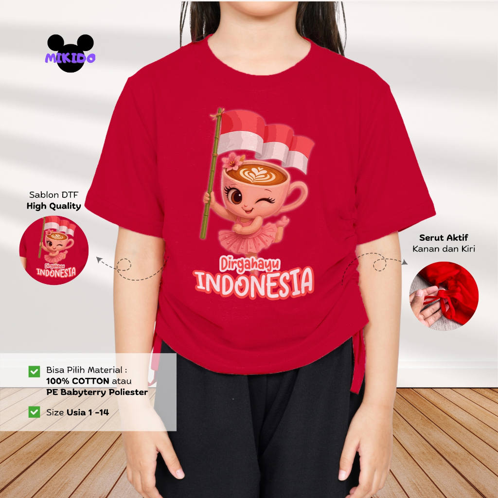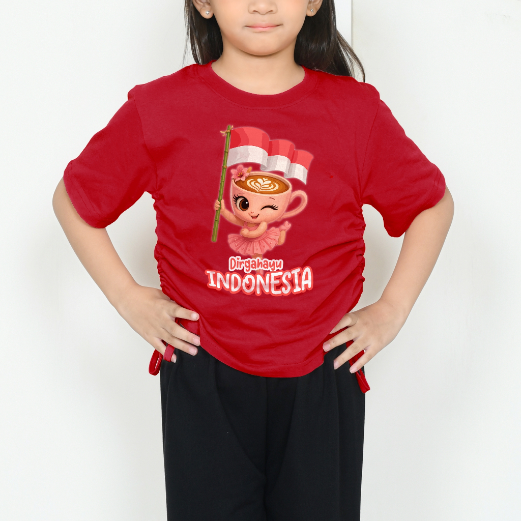 Kaos Serut Crop Top Anak Perempuan Kekinian Anomali Kemerdekaan Indonesia | Atasan 5 - 14 Tahun