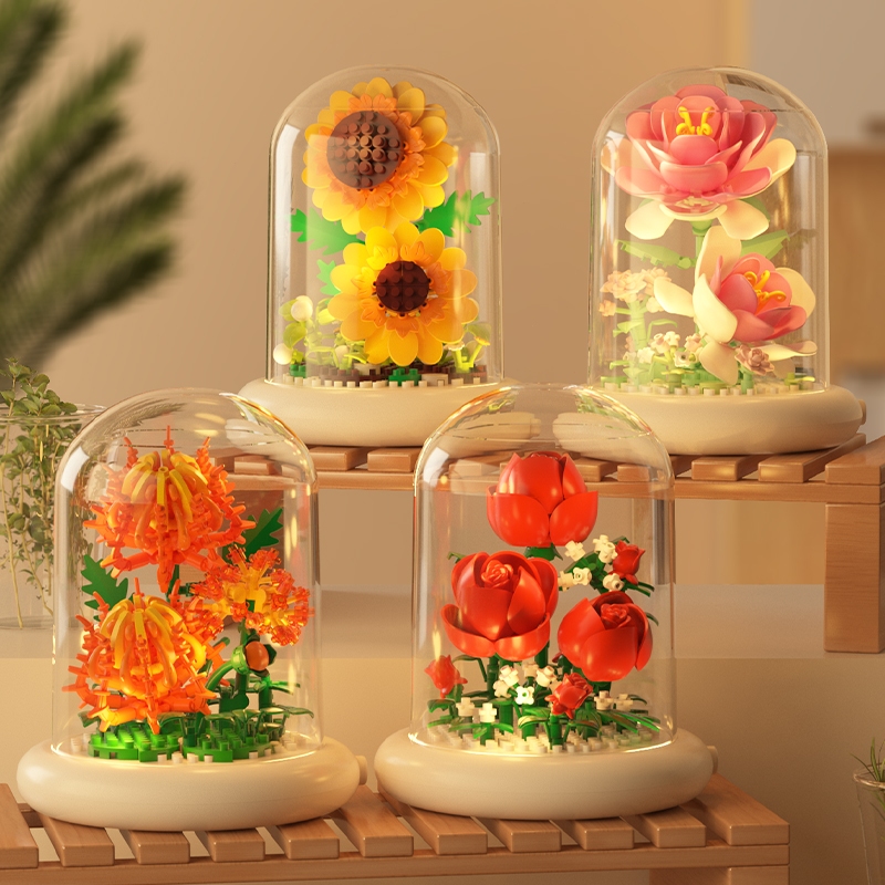 ZhengBo (LED) Plant Bricks Bunga Block Bata Mainan DIY Bunga Buket Balok Bangunan Nano Mainan Toys Hadiah Hari Valentine