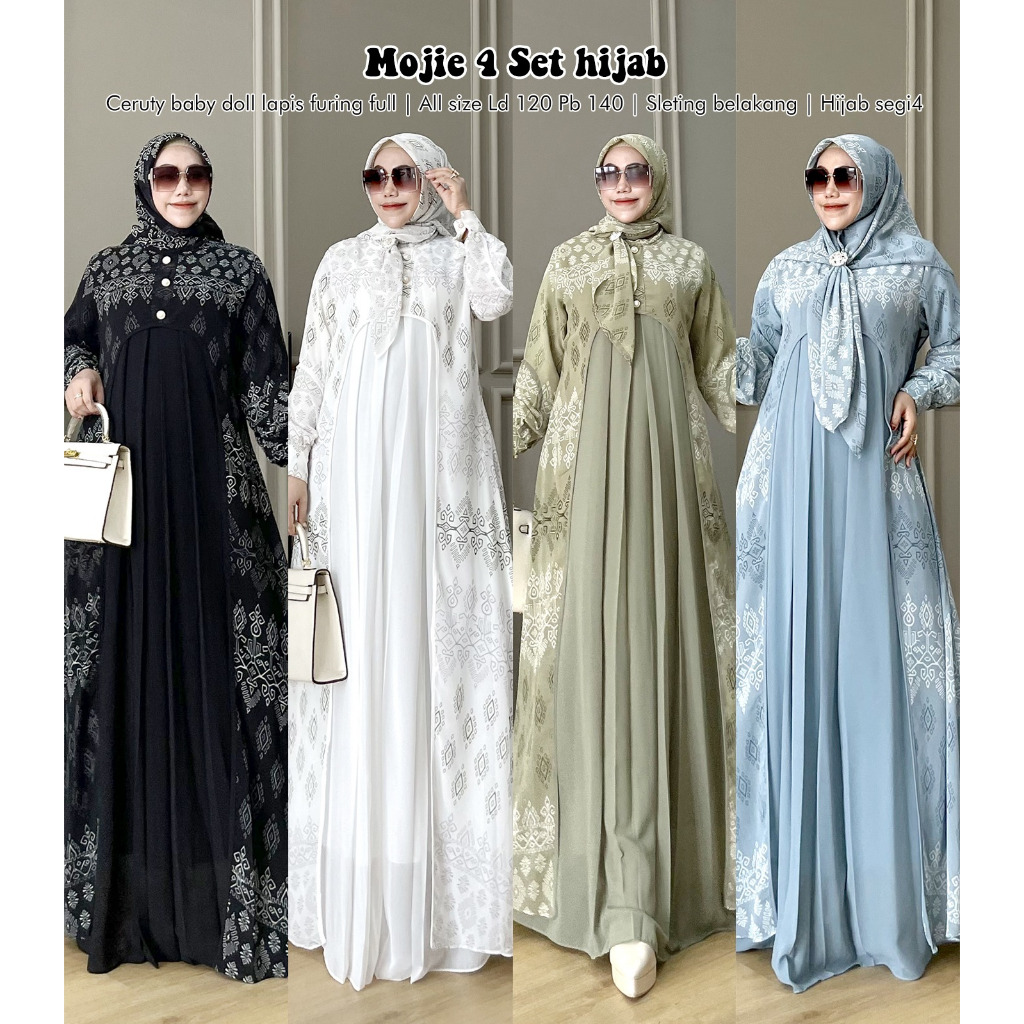 [Mall] SHIREEN FS - MOJIE 4 BAJU GAMIS SET HIJAB MOTIF ETNIK CERUTY BABY DOLL PREMIUM TERBARU DAN KEKINIAN