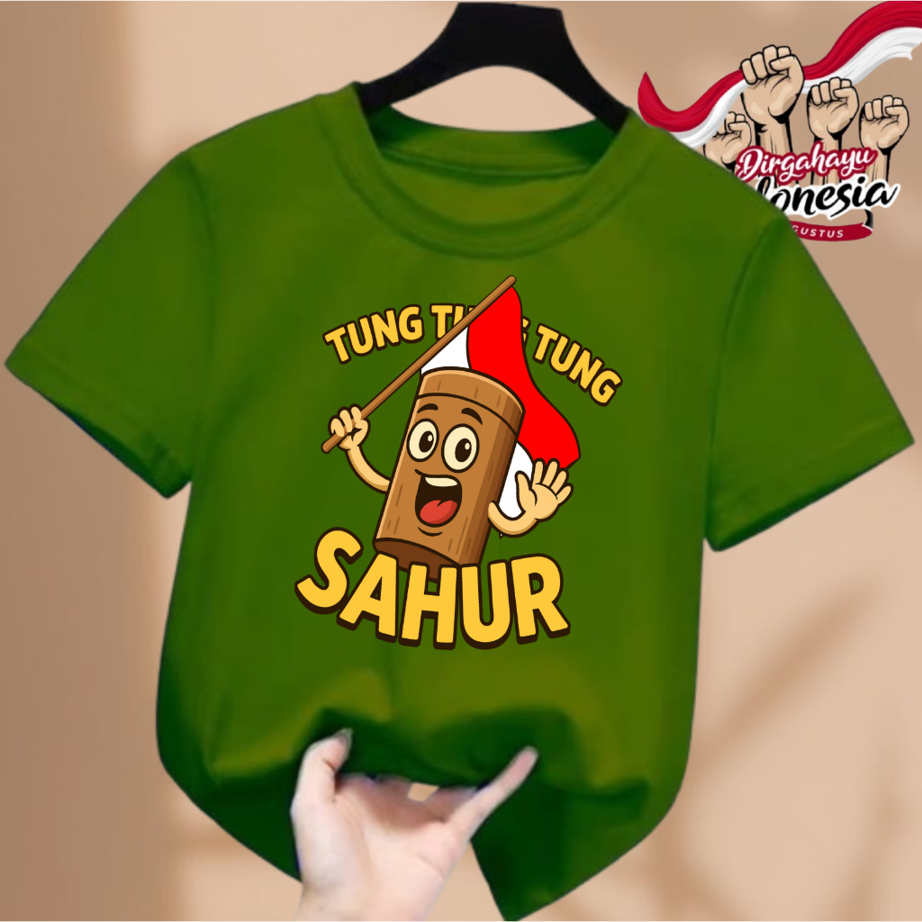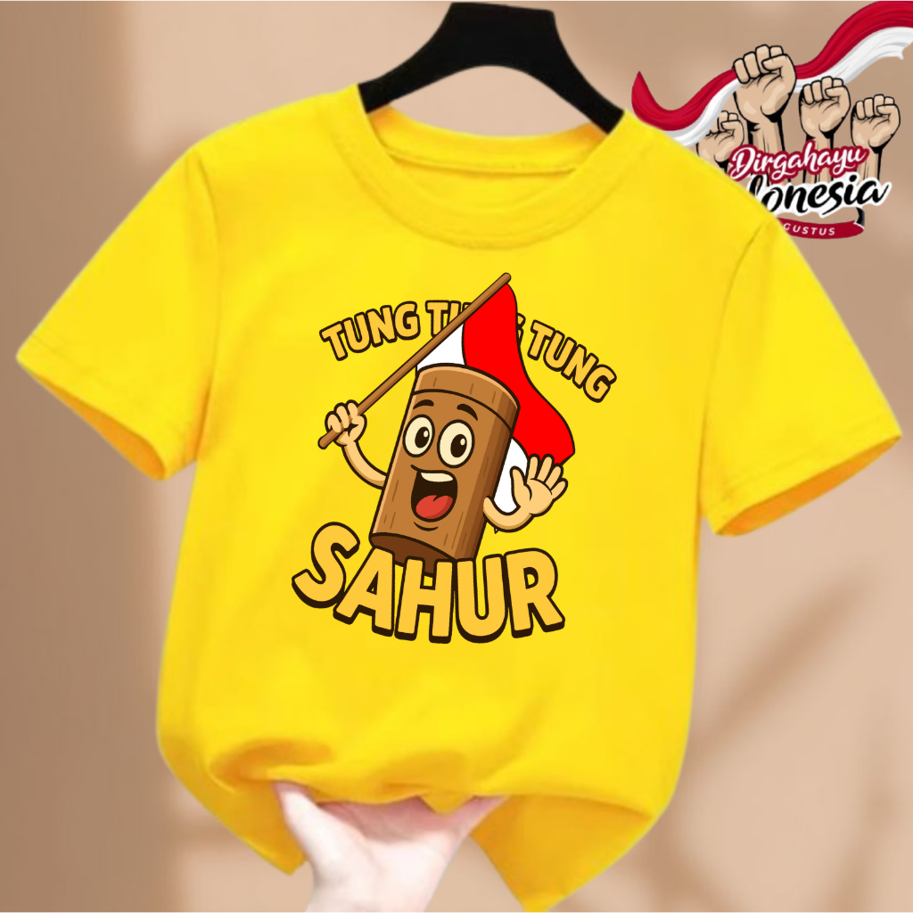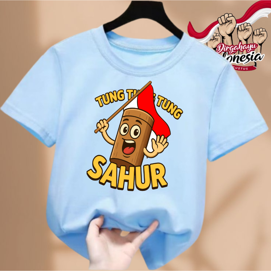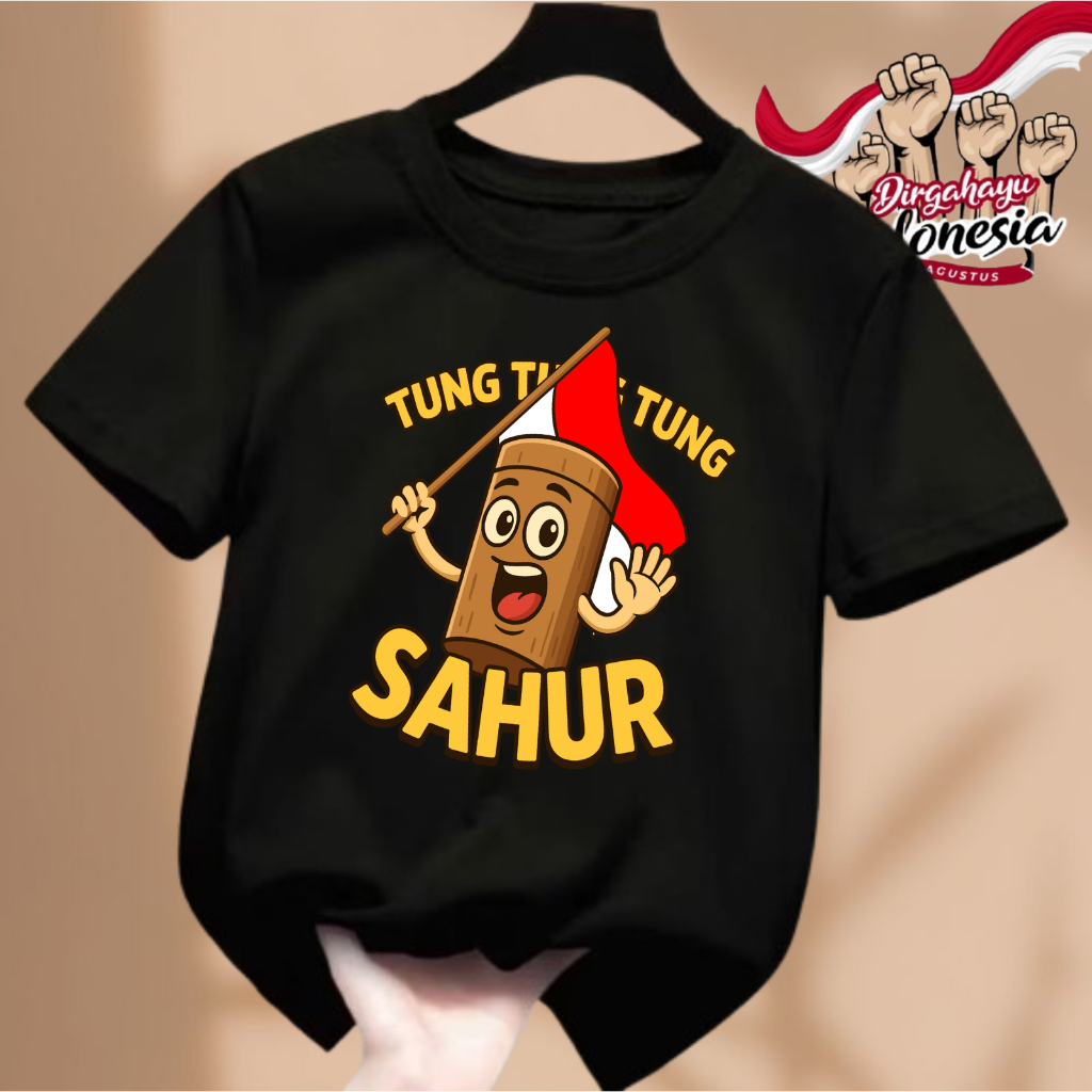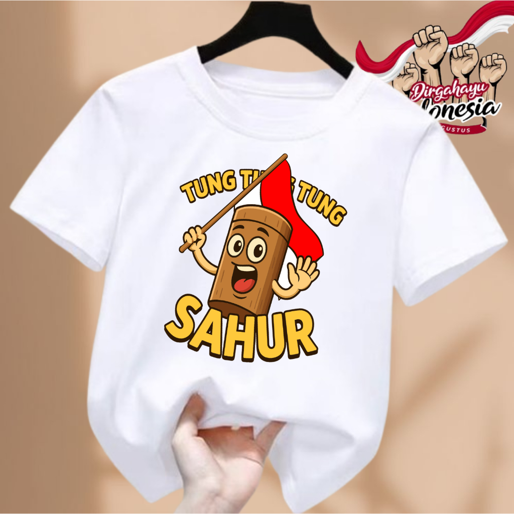 Kaos Anak Cewek Cowok Unisex Tung Tung Membawa Bendera Merah Putih