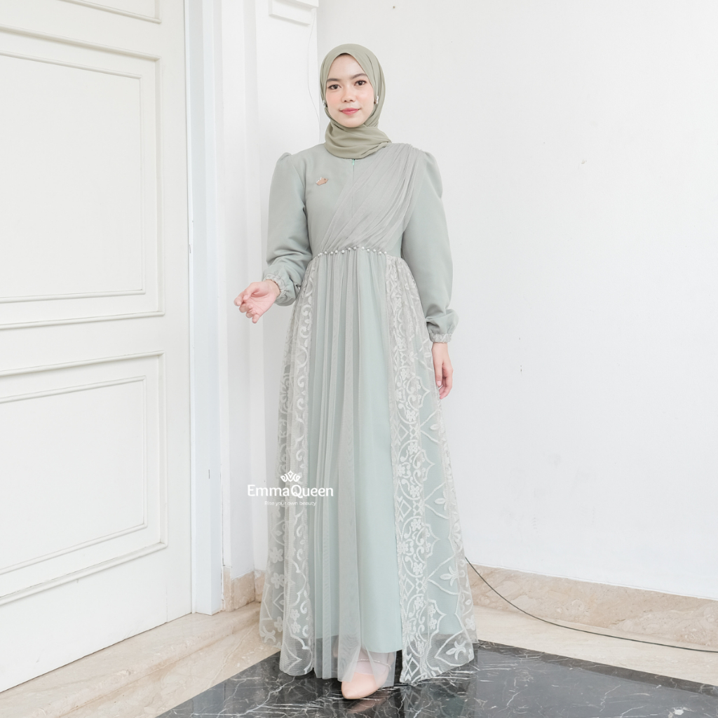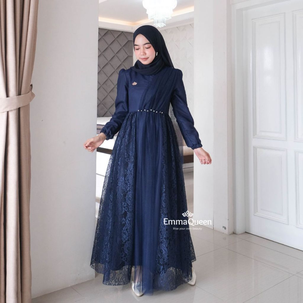 [Mall] EMMAQUEEN - DRESS HEIDY GAMIS KONDANGAN SIMPLE ELEGAN KOMBINASI TILE BRUKAT MIX MUTIARA XS/XXL BUSUI