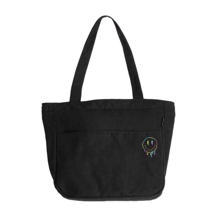 GROSIR Oakhopes - Tas Tote Bag Kanvas Resleting - Totebag Hitam Inner Pocket Pria Wanita egecf