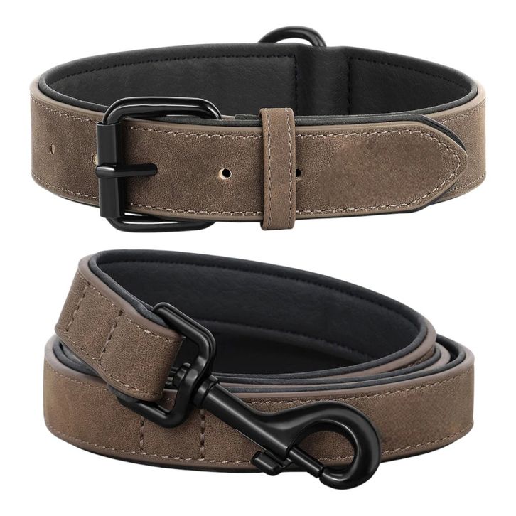Kalung Anjing Dan Tali Tuntun Collar Dog Kulit Sapi Asli Tebal